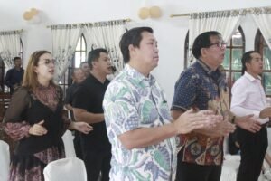 Manado – Wakil Gubernur Sulawesi Utara Steven Kandouw menghadiri ibadah bersama Jemaat GPdI Victory Tonsewer Tompaso, Minggu (14/1/2024).