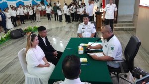“Tentunya hari ini sangat berbeda dari hari yang lalu (sebelumnya). Hari ini kalian sudah satu di mata Tuhan juga di mata negara,” ujarnya seraya mengingatkan pentingnya dokumen kependudukan baik KTP, KK dan Surat Nikah.